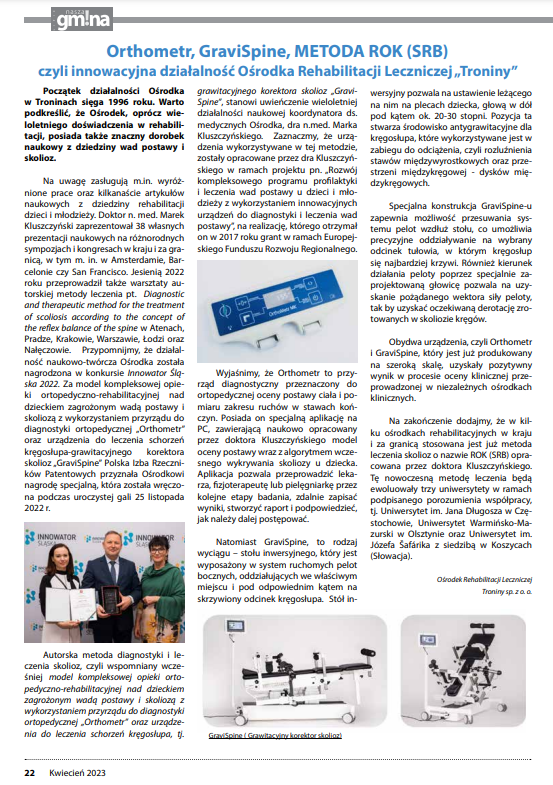 Nowatorska metoda leczenia skolioz Równowagi Odruchowej Kręgosłupa (ROK) z wykorzystaniem urządzenia “Gravi Spine” autorstwa Dr n. med. Marka Kluszczyńskiego